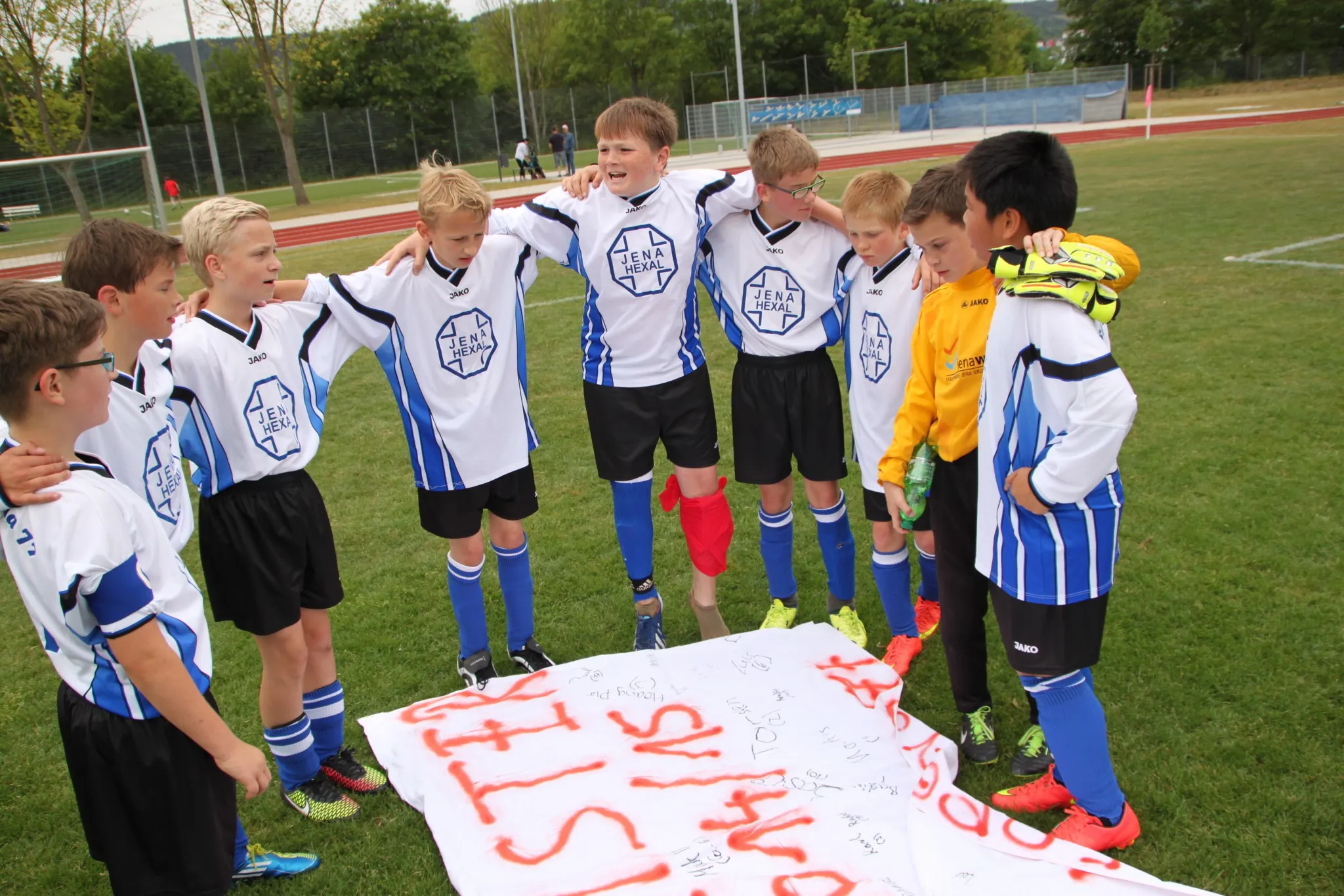 Sei es drum. Zwätzens Anhänger konnten verdient am Ende das Meisterbanner zücken und Lobeda ließ sich nicht lumpen selbiges zu tun. Am Ende feierten beide Teams auf dem Platz eine Meisterschaft. Denn auch der D-Bereich Lobedas konnte zuvor schon in Staffel B jubeln. Kurzum: Auch ein 1:8 kann zum feiern einladen. ;)