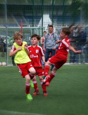 Am Samstag, dem 23. Mai 2015, starteten wir zum dritten KM-Turnier beim SV Schott Jena. Die Vorfreude auf ein spannendes G-Juniorenturnier bei gutem Wetter und optimalen Bedingungen in der Oberaue wurde schnell durch unverständliche organisatorische Entscheidungen getrübt. Anstatt auf den reichlich vorhandenen Rasenplätzen mit zwei parallelen Spielfeldern zu spielen, wurde das Turnier auf nur einem Kunstrasenfeld ausgetragen. Dadurch gab es Pausen von bis zu 50 Minuten zwischen zwei Spielen.