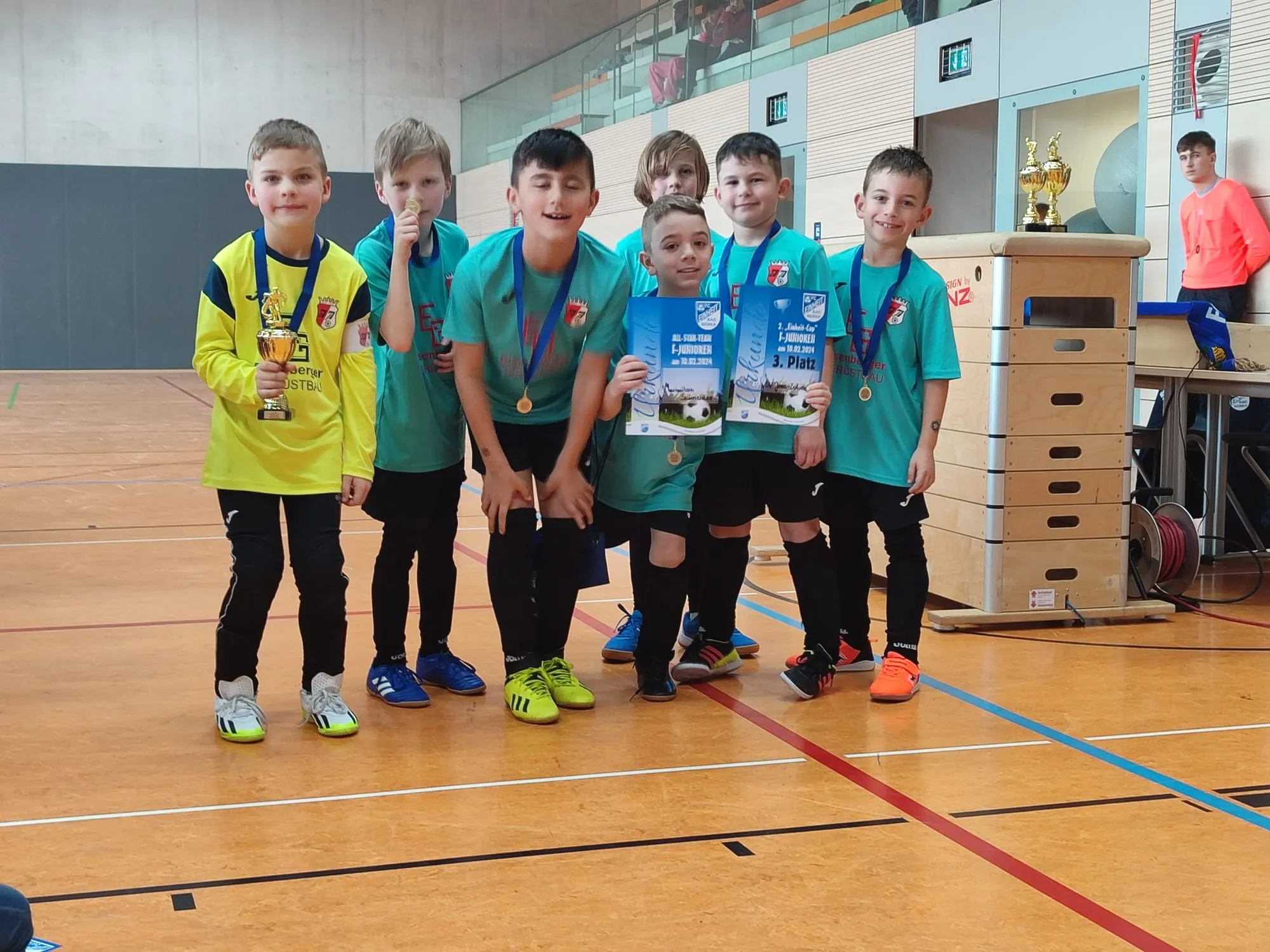 Am 10.2.2024 traten unsere F1-Junioren zum letzten Hallentunier in diesem Winter in Bad Berka an. Durch Ferienbeginn und den aktuellen hohen Krankenstand konnten wir nur mit 7 Spielern anreisen. Den anderen 7 Mannschaften an diesem Tag ging es ähnlich.